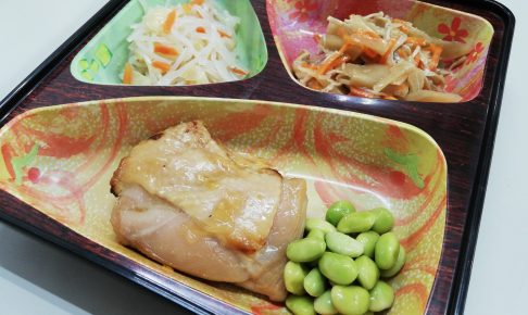 医療食を検討されている方にご参考頂けるように 実際に提供されたメニューをご紹介したいと思います。 今回は「透析食」のおかずセットです。 【メニュー】・鶏の幽庵焼き(付け合わせ:枝豆)・えのき金平・人参と春雨のサラダ【栄養…