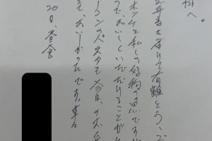 先月末に急遽店舗が無くなり、今月から対応することになり3週間後に頂いたお手紙です。
