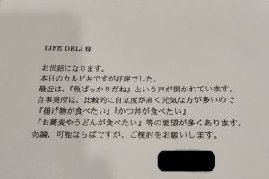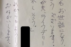 ライフデリ松本店への感謝のお手紙を紹介します。