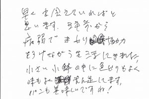 在宅で介護されるようになってから施設に入所されるまでの間、お弁当をお届けさせて頂き、そのご家族の方から感謝のお手紙を頂戴しました。