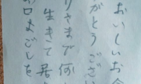 ライフデリ横浜川崎店へのお手紙をご紹介します。 「『おいしかった。ありがとう。』という 感謝のお手紙をいただきました。」とのことです。 お一人で生活されている女性のご利用者様から、 『おいしかった。ありがとう。』という …
