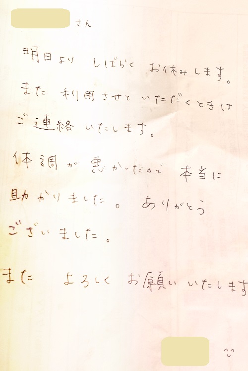 ライフデリ大田店へお手紙を頂戴しました。 通院で不在の際のご伝言と暑い中の配達への労いのお言葉を頂戴しました。ありがとうございます。 ライフデリではご利用者様が健康で暑い夏を乗りきれるよう、栄養バランスに配慮したお弁当と…