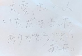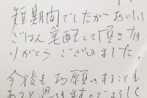 クリスマスの日に急遽入院されて1か月後の昨日、無事に退院されて配食を再開されました。 そのクリスマスの日にお手紙を書いてくださっていたのですが、入院を経て昨日頂戴致しました。ありがとうございました。