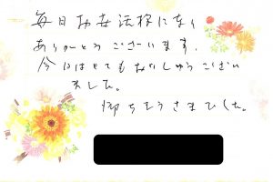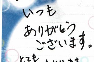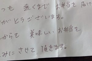 お客様の声2021.02.09 DELILIFE ライフデリ中野店にお手紙を頂戴しました! ライフデリ中野店へのお手紙をご紹介します。 「 美味しかったです。 配たつご苦労様です。 車に気をつける用にして下さい。 これからも宜しくお願いします。 」とのことです。 オープン月の12月から1日3食、週7日お弁当をお届けしている利用者さんです。いつもお届け票の裏にお手紙を書いて下さいます。ありがとうございました。 中野区でご高齢向けのお弁当をお探しの方、糖尿病・腎臓病の方は是非、高齢者配食サービスのライフデリ中野店にお任せ下さい。