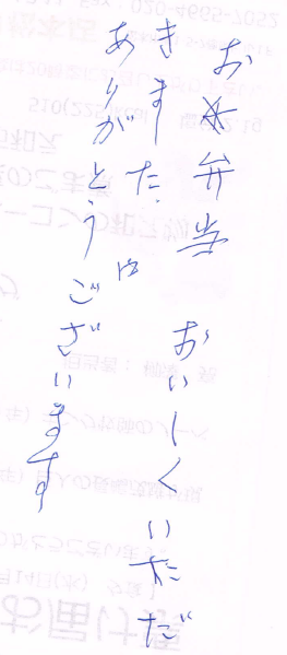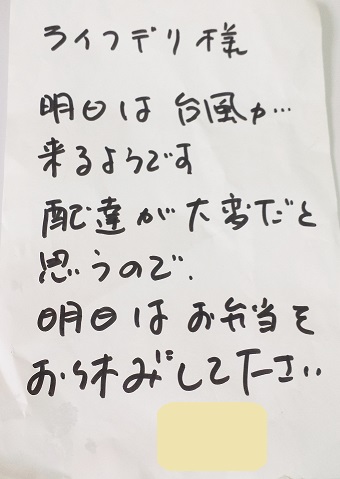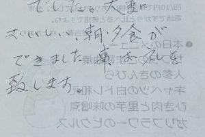 試食して頂いたお客様のご家族の方より、お手紙を頂戴いたしました。気に入っていただき、利用開始となりました。ありがとうございました。