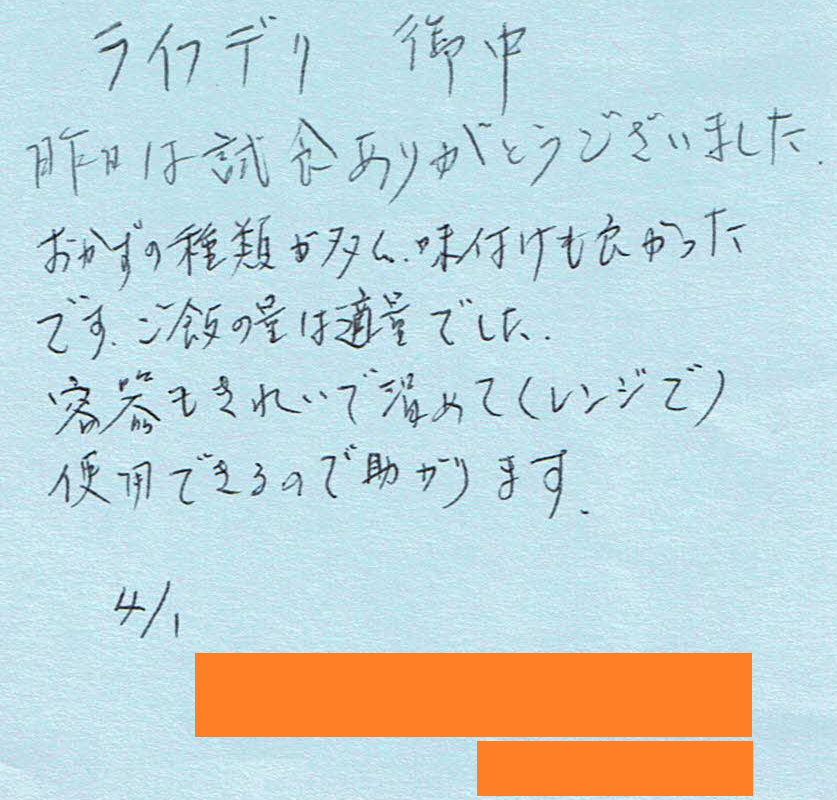 ライフデリ加古川・高砂店へのお手紙をご紹介します。