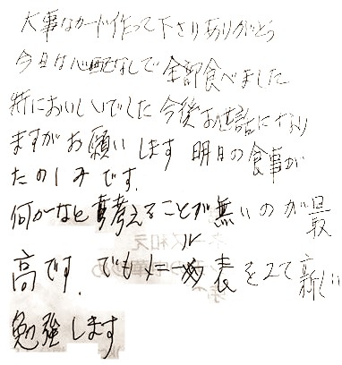 ライフデリ加古川・高砂店へのお手紙をご紹介します。