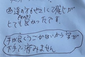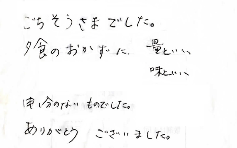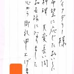 前の体重に戻りつつあるそうです。基本的には置き配の方ですが、ご利用者アンケートシートと共に頂戴したお手紙です。