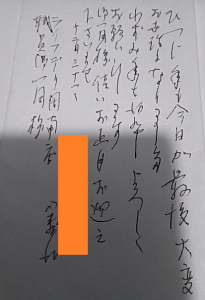ご夫婦で当店のお弁当を利用頂いてるお客様です。毎日夕食の利用をされています。大晦日までお弁当の配達をすることに感謝いただきお手紙を頂戴しました。ありがとうございました。