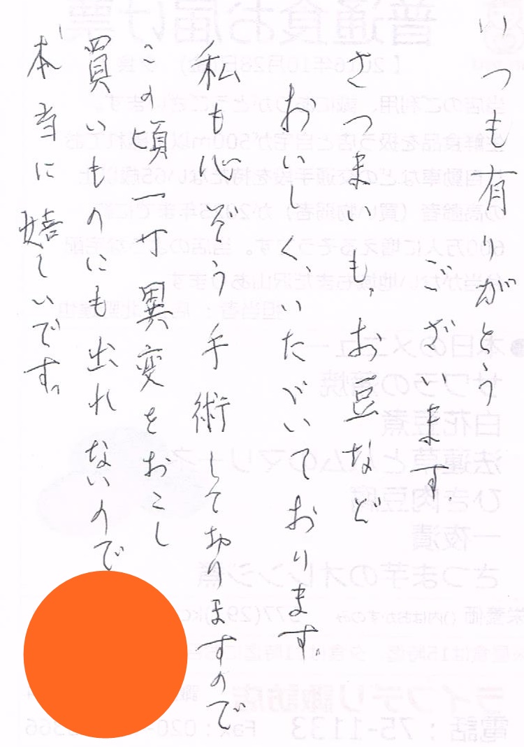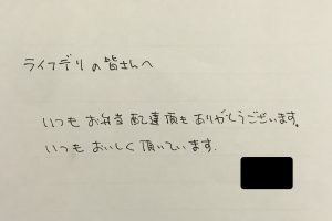ライフデリ大田店へのお手紙をご紹介します。