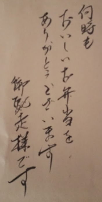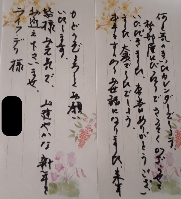 昼食夕食を毎日お届けさせていただいているお客様より、カレンダーお礼のお手紙を頂戴しました。ありがとうございました。