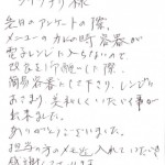 ライフデリ大田店へお客様からメッセージを頂戴しました。
