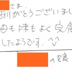 「新メニューの親子丼とてもおいしかったです。ごちそうさま」