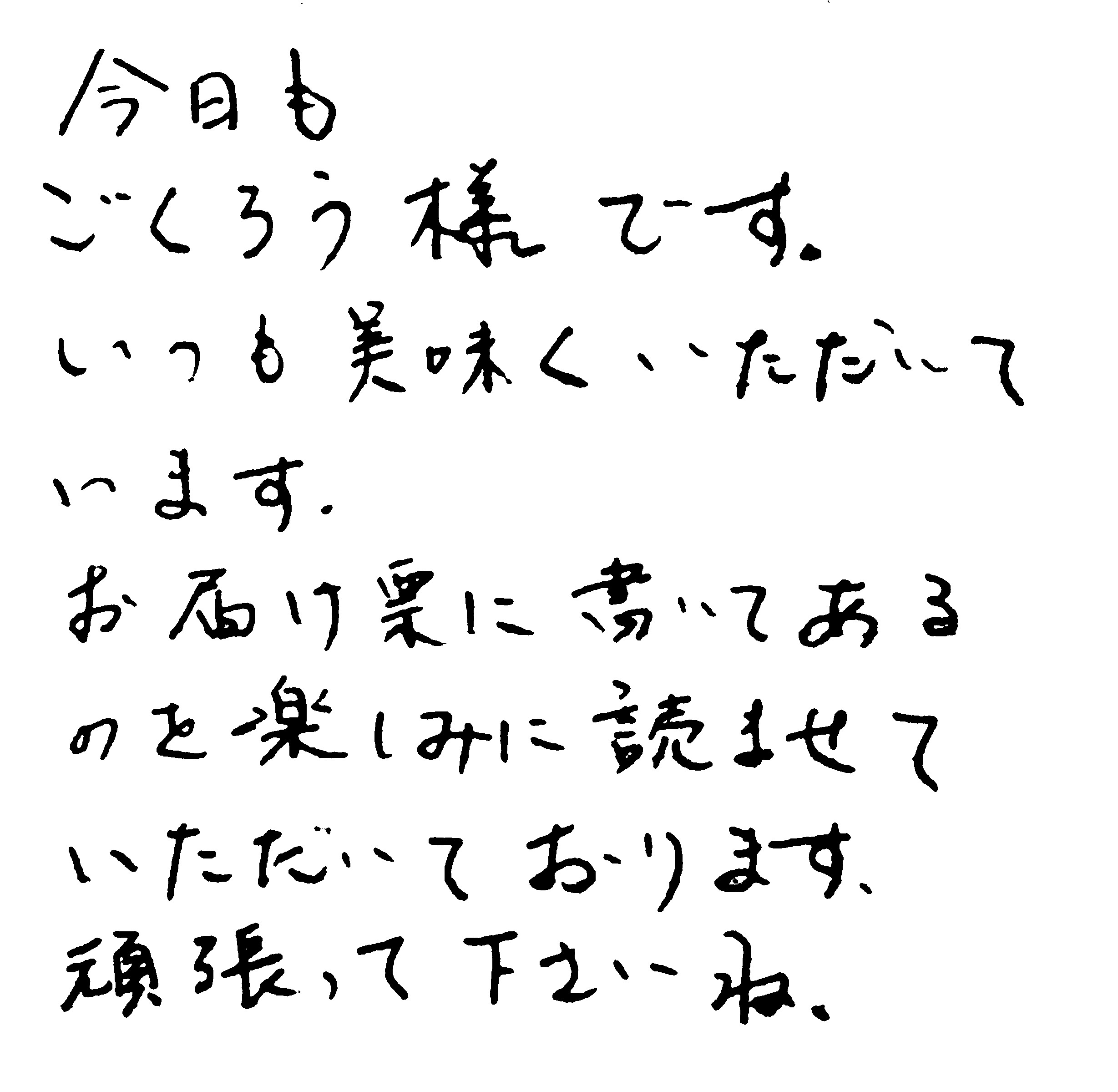 ライフデリ大田店へ新メニューの感想を頂戴しました。
