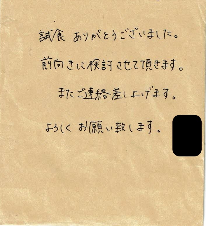 お客様の声2020.10.08 DELILIFE ライフデリ宮崎店にお手紙を頂戴しました! ライフデリ宮崎店へのお手紙をご紹介します。 「「試食有難うございました、前向きに検討させていただきます。またご連絡差し上げます、よろしくお願いいたします」というお手紙を頂戴いたしました」とのことです。 ご家族からのご依頼で、当店のお弁当のご試食をお届けいたしました。翌日の容器回収時にお手紙をいただきました。ありがとうございました。 宮崎市でご高齢向けのお弁当をお探しの方、糖尿病・腎臓病の方は是非、高齢者配食サービスのライフデリ宮崎店にお任せ下さい。