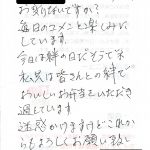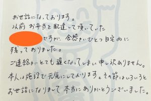 お客様の声2020.05.22 DELILIFE ライフデリ川崎店にお手紙を頂戴しました! ライフデリ川崎店へのお手紙をご紹介します。 「毎日のお食事届けていただきありがとうございます。 バランスの良いメニューに感激しております。 バランスの良いカロリー食に感謝」とのことです。 開業まもなくご利用されているご夫婦です。 歌が好き、絵を描くことが好き。 そんなご利用者からの手紙です。 俳句など積極的に参加して頂いております。ありがとうございました。 川崎市川崎区でご高齢向けのお弁当をお探しの方、糖尿病・腎臓病の方は是非、高齢者配食サービスのライフデリ川崎店にお任せ下さい。