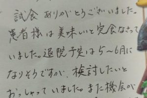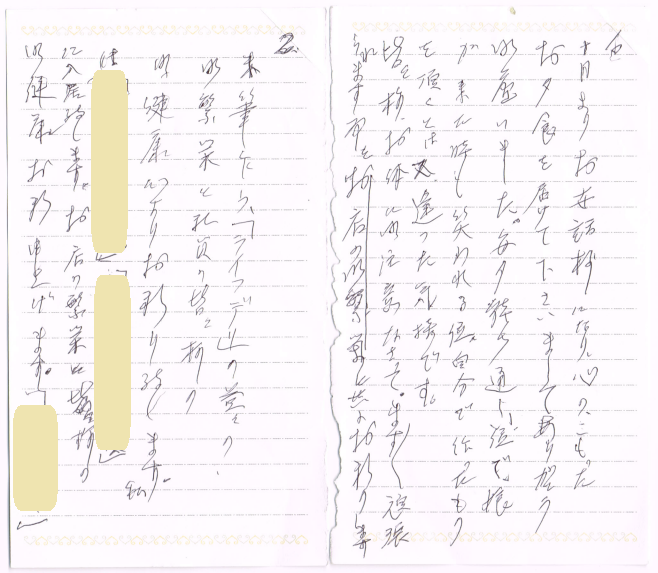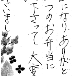 毎日ご利用されていたお客様のご家族からお手紙をいただきました。百寿者でしたがご自宅で穏やかに過ごされていた方で毎日の食事をいつも楽しみに待っていてくださいました。残念ながら逝去されましたが前日までお弁当を食べていただいていたそうです。