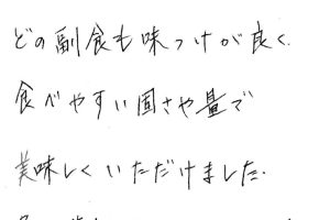 お弁当に「お届け票」という毎日の献立と今日の一言(店舗の情報や生活豆知識など)を掲載した紙をお付けしています。季節柄さつまいものお話を記載させて頂きましたが、お喜び頂いたようで、毎日の書き甲斐があります!こちらこそありがとうございました。ライフデリではお弁当をお届けするだけではなく、ご高齢のお客様とのコミュニケーションも大切にして参ります。