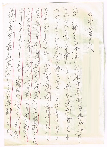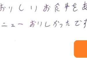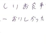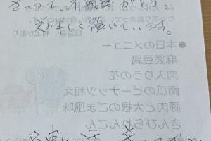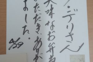 お客様の声2022.06.22 LIFEDELI ライフデリ彦根店にお手紙を頂戴しました! ライフデリ彦根店へのお手紙をご紹介します。 「昨日のごはんおいしかった。 全部食べた。」とのことです。 今月よりケアマネージャーさんからご紹介のお客様よりメッセージを頂きました。 ペンがうまく使えないとの事で、スタッフが代筆しました。 彦根市でご高齢向けのお弁当をお探しの方、糖尿病・腎臓病の方は是非、高齢者配食サービスのライフデリ彦根店にお任せ下さい。
