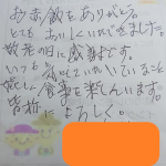 お客様の声2022.09.12 LIFEDELI ライフデリ彦根店にお手紙を頂戴しました! ライフデリ彦根店へのお手紙をご紹介します。 「総カロリーは控えめに感じましたが、満腹感はしっかりありました。味付けもやさしく、美味しく頂きました。もう少し飾りがあると見た目も美味しく感じられると思います。」とのことです。 ご紹介を頂いておりますケアマネージャー様からから連絡があり、移動して来たた方に試食をさしてあげたいとの事。即希望日対応。回収時メッセージを頂きました。 彦根市でご高齢向けのお弁当をお探しの方、糖尿病・腎臓病の方は是非、高齢者配食サービスのライフデリ彦根店にお任せ下さい。