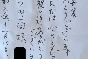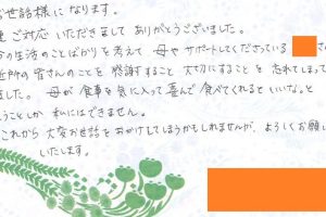 お客様の声2021.12.25 LIFEDELI ライフデリ彦根店にお手紙を頂戴しました! ライフデリ彦根店へのお手紙をご紹介します。 「ワカメヒジキなどの海藻類や大豆など豆類など栄養のバランスをよく考え、味付け良く毎日工夫して作っておられて感心しております。」とのことです。 11月より開始された毎日昼夜ご利用のお客様です。 毎日の配食についてお手紙を頂きました。 彦根市でご高齢向けのお弁当をお探しの方、糖尿病・腎臓病の方は是非、高齢者配食サービスのライフデリ彦根店にお任せ下さい。