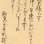 「本日は祝日で丁寧にも赤飯をごちそうになり誠に有がとうございます」