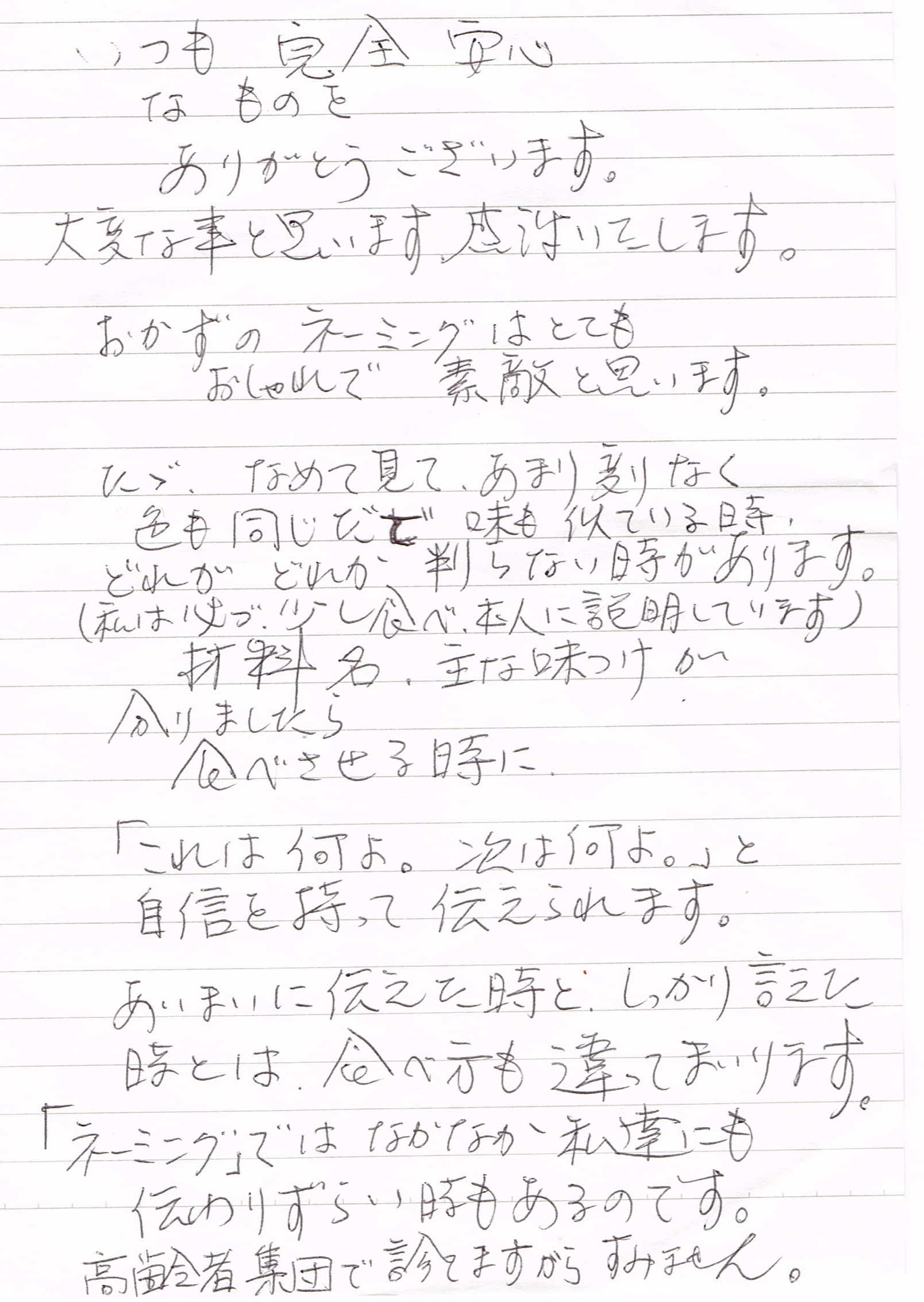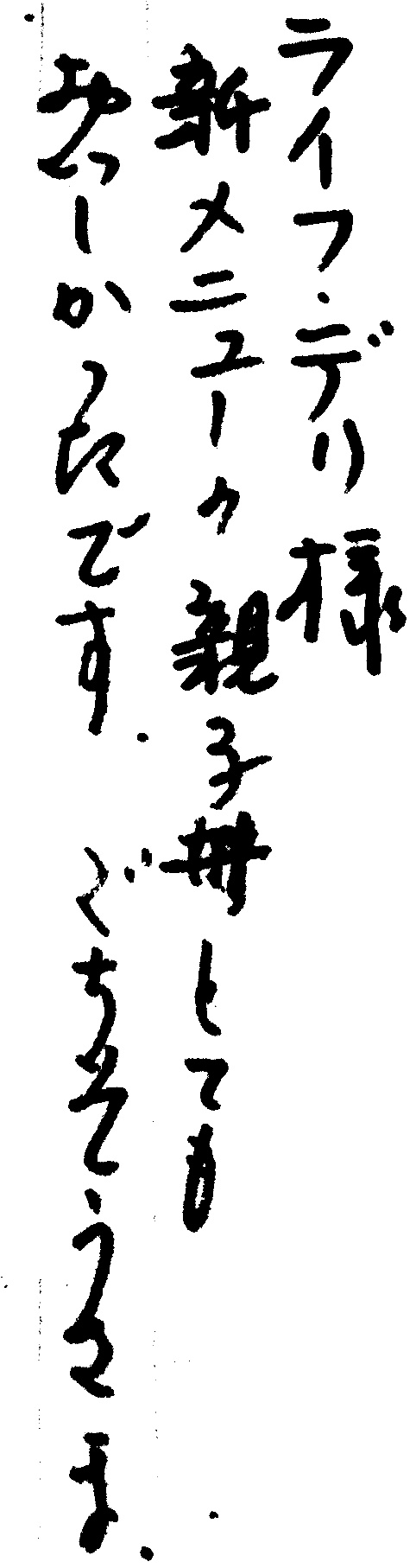 ライフデリ所沢店へのお手紙をご紹介します。