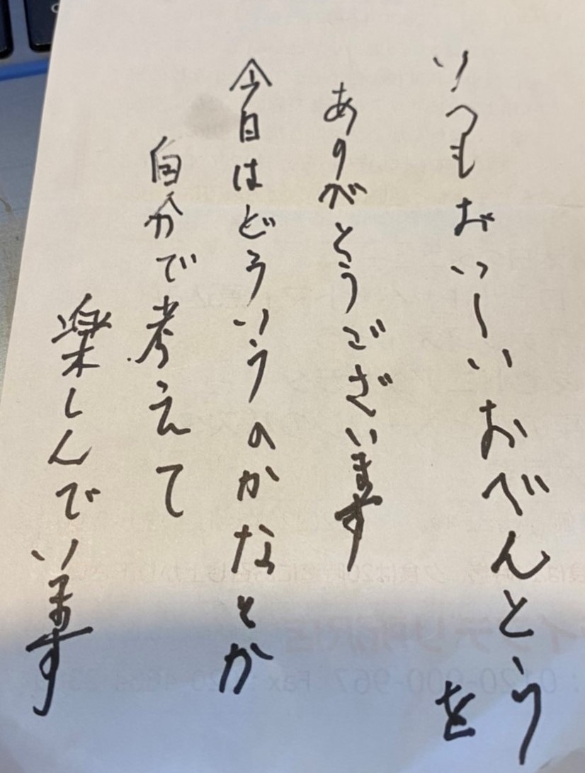 「いつもおいしいおべんとうをありがとうございます。今日はどういうのかなと自分で考えて楽しんでます。」とのことです。