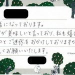 2年以上週5回ご利用されてたお客様で、12月より離れたご家族のところに引越しをなされるので11月いっぱいでお弁当を取りやめになされる最後の日にお手紙を頂きました。 配達に伺った際には、よく故郷の秩父のお話を楽しそうに語っていただけました。ありがとうございました。