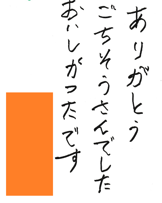 「ありがとう ごちそうさんでした おいしかったです」とのことです。