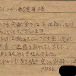 中止となったお客様から、1か月間おいしいお弁当を届けてくれてありがとうという内容のお手紙をいただきました。