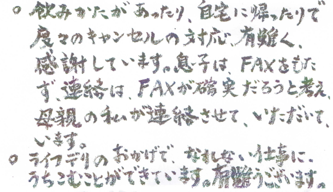 ライフデリ横浜鶴見店へのお手紙を紹介いたします。