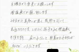 「「美味しかった」と完食していました。離れて暮らしているので食事や手渡しをして頂けて安心で有り難いです」