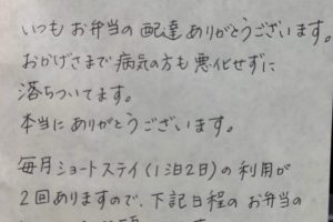 敬老の日にご利用者様にお祝いの紅白饅頭とお手紙を添えてお届けいたしました。そのお礼のお手紙を2通頂戴いたしました。ありがとうございました。