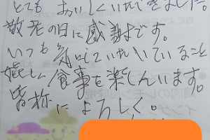 ライフデリ越前店にお客様から感謝のお手紙を頂戴致しました。