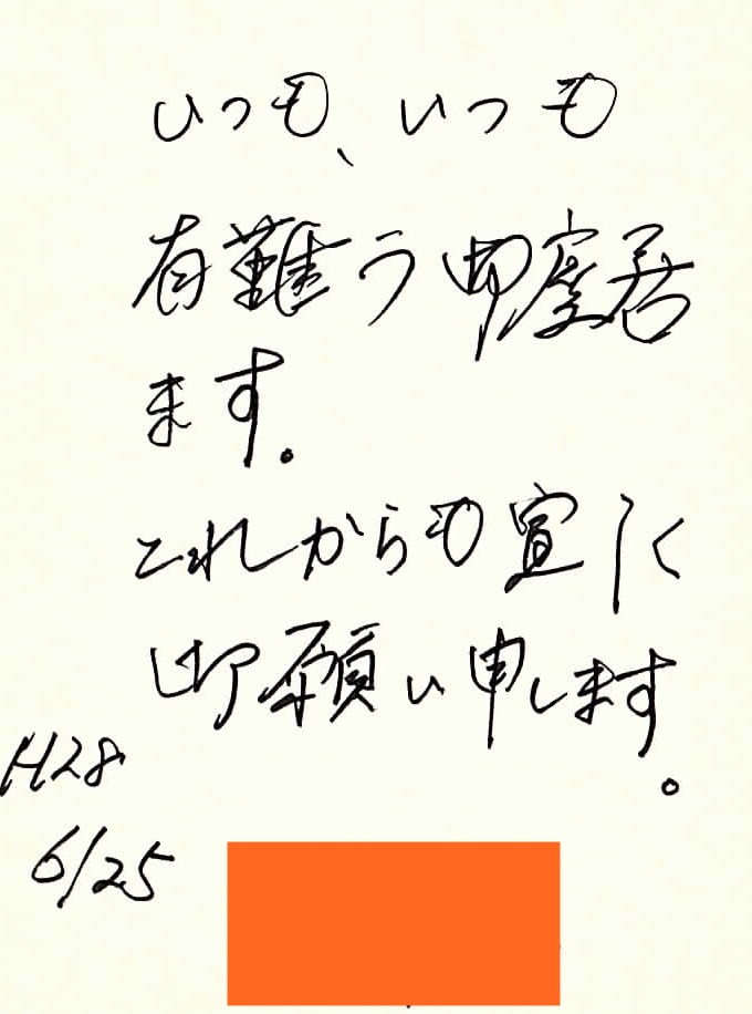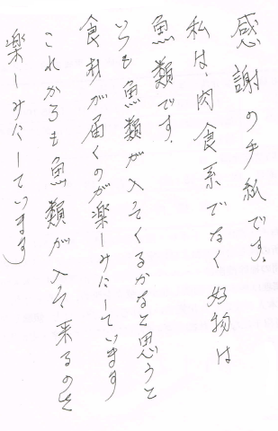 「「ごちそうさまでした。いつにするかは娘の来ない日におねがいします。」というお手紙を頂戴しました。」とのことです。
