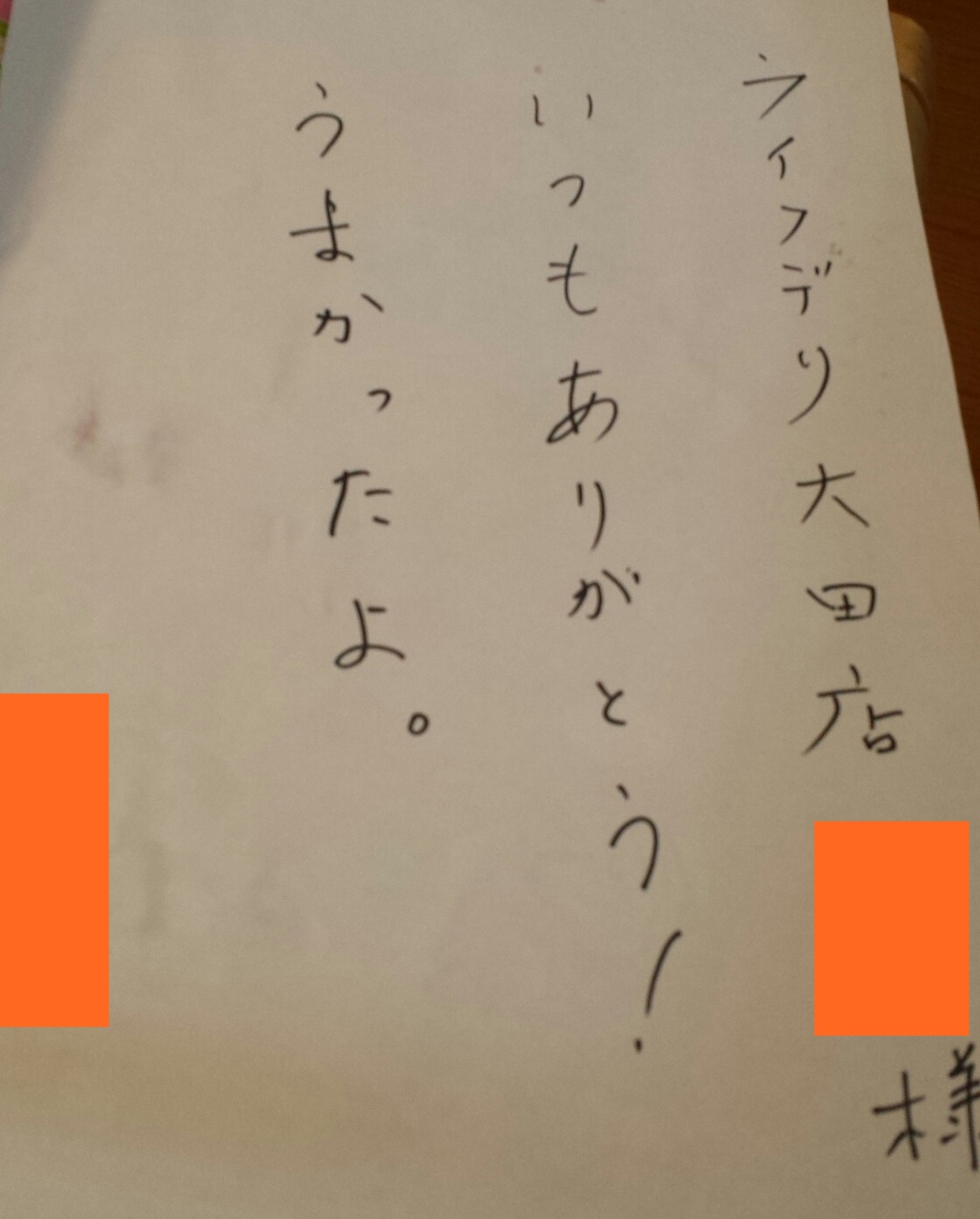 ライフデリ越前店へのお手紙をご紹介します。