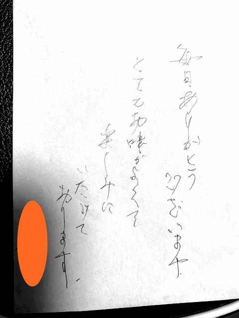 お客様の声2020.04.16 DELILIFE ライフデリ霧島店にお手紙を頂戴しました! ライフデリ霧島店へのお手紙をご紹介します。 「毎日ありがとうございます。 とてもお味がよくて 楽しみにいただいております。」とのことです。 2月より新しく利用を始めていただいたお客様で、初めての集金の際にお手紙を頂戴いたしました。 配達時、毎日のようにおいしいよと言ってくださいます。ありがとうございました。 霧島市でご高齢向けのお弁当をお探しの方、糖尿病・腎臓病の方は是非、高齢者配食サービスのライフデリ霧島店にお任せ下さい。