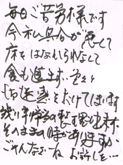 お客様からスタッフの健康をお気遣い頂きました。ありがとうございます。季節の変わり目ですので、お弁当をご利用される皆様も風邪など召されぬよう、お身体を大切にお過ごし下さい。