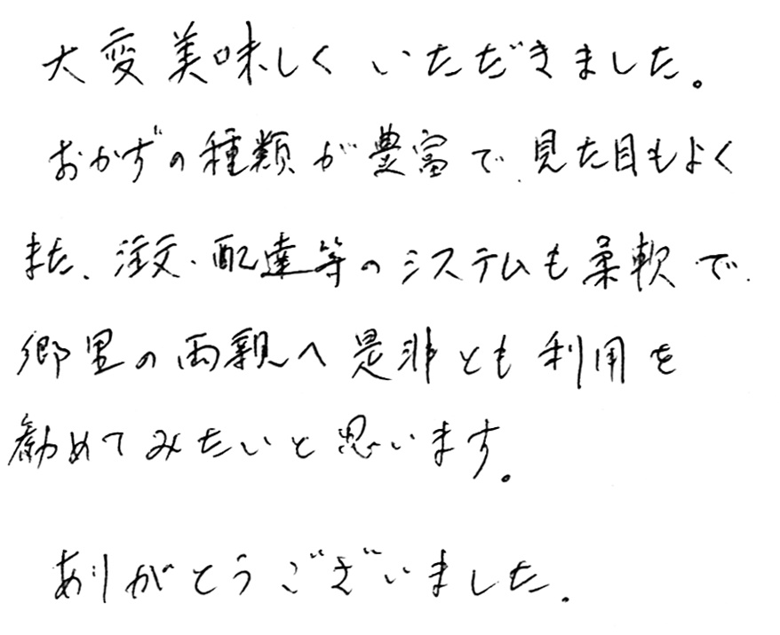 「ごちそうさまでした。大根と青葉の柚子和えがおいしかったです」