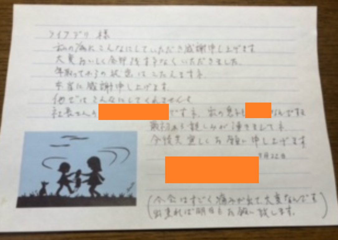 ライフデリ仙台太白店へのお手紙をご紹介します。