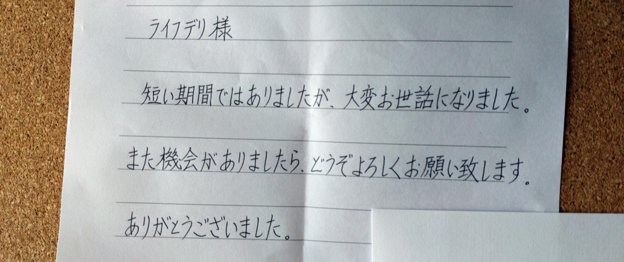 半年間ほどご利用されていましたが、ご入院されるとのことで娘様よりお手紙を頂戴致しました。