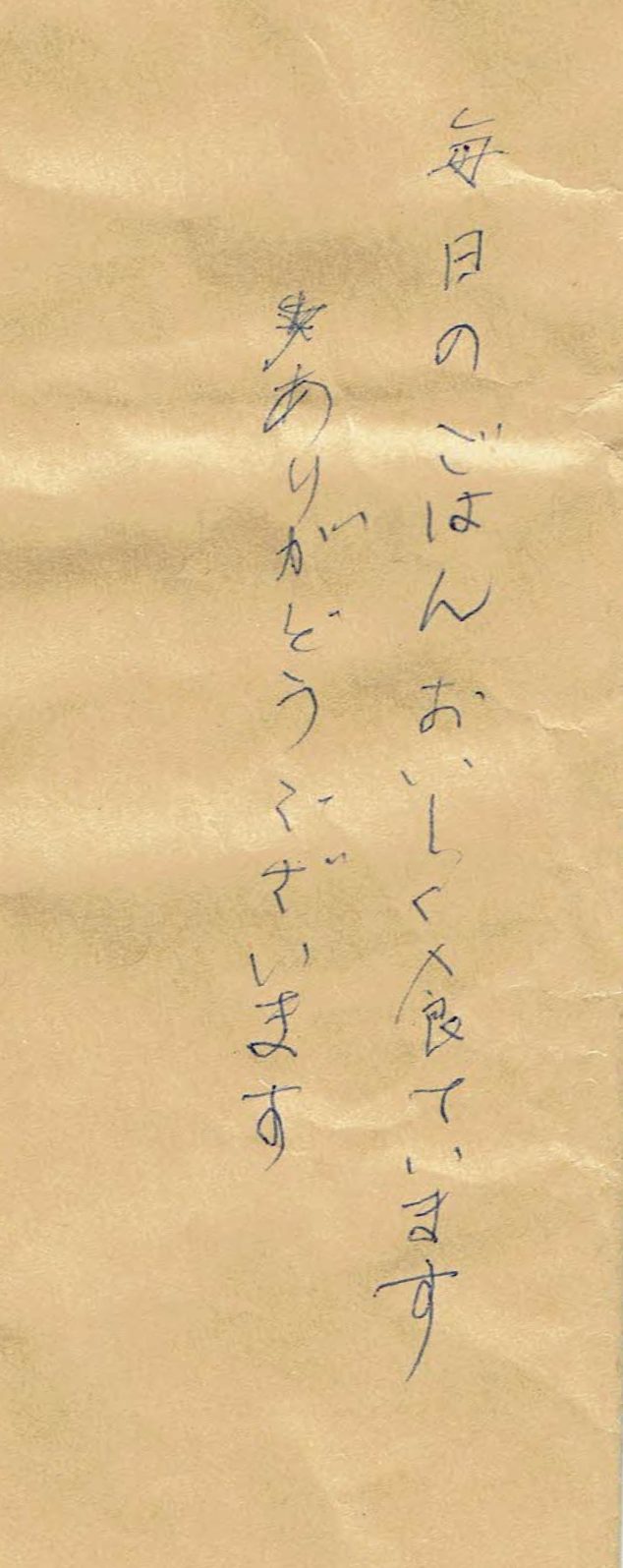 お客様の声2019.03.13 DELILIFE ライフデリ宮崎店にお手紙を頂戴しました! ライフデリ宮崎店へのお手紙をご紹介します。 「「毎日のごはんおいしく食べています。ありがとうございます」というお手紙を頂戴しました。」とのことです。 なかなか玄関まで出てこられないお客様でいつも呼鈴を押してお声確認後に保冷バッグで置換をさせていただくお客様です。お支払用の封筒にスタッフ宛てのメッセージを頂きましたありがとうございました。 宮崎市でご高齢向けのお弁当をお探しの方、糖尿病・腎臓病の方は是非、高齢者配食サービスのライフデリ宮崎店にお任せ下さい。