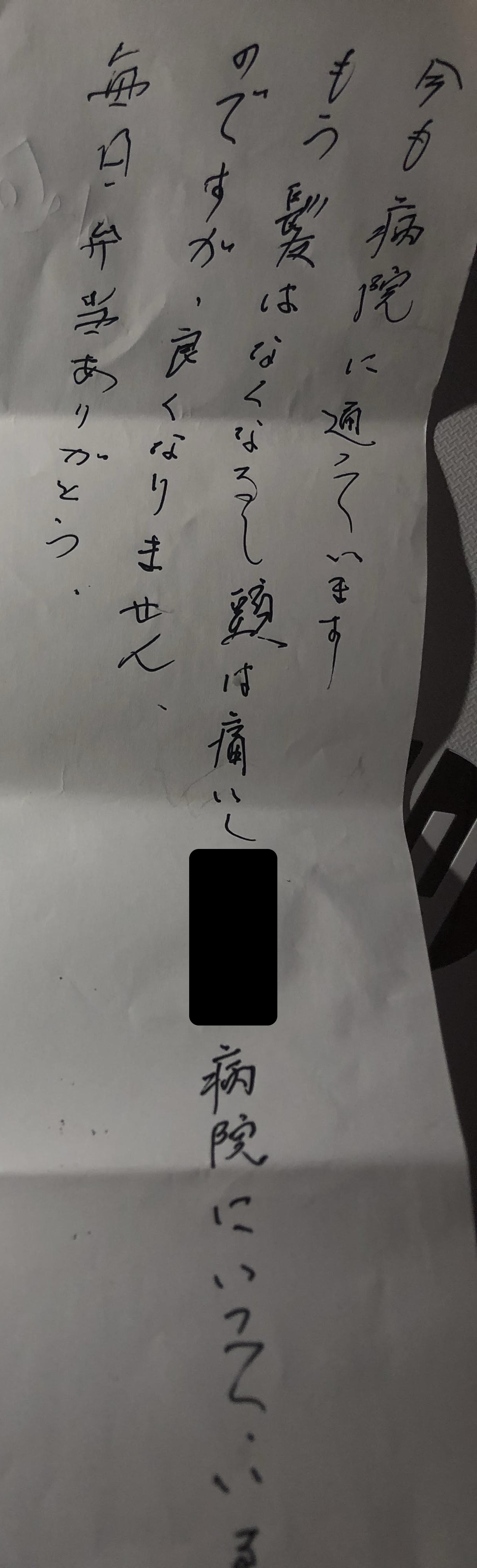 通院されているお客様からのお手紙です。なかなか体調が良くなられないとのことでした。早く良くなることを願っております。ありがとうございました。