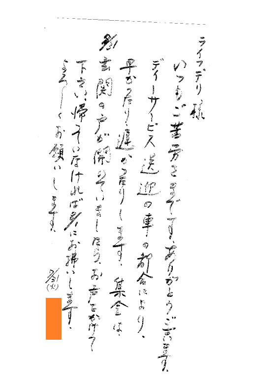 お客様の声2018.08.01 2019.03.15 DELILIFE ライフデリ松本店にお手紙を頂戴しました! ライフデリ松本店へのお手紙をご紹介します。 「本日の集金に際しての対応方法についてのお手紙を頂戴いたしました。」とのことです。 2年半ご利用のお客様。月~土の夕食をご利用。1ヶ月半ほどお休みされて、4月より再開されたお客様 です 。ありがとうございました。 松本市でご高齢向けのお弁当をお探しの方、糖尿病・腎臓病の方は是非、高齢者配食サービスのライフデリ松本店にお任せ下さい。