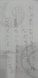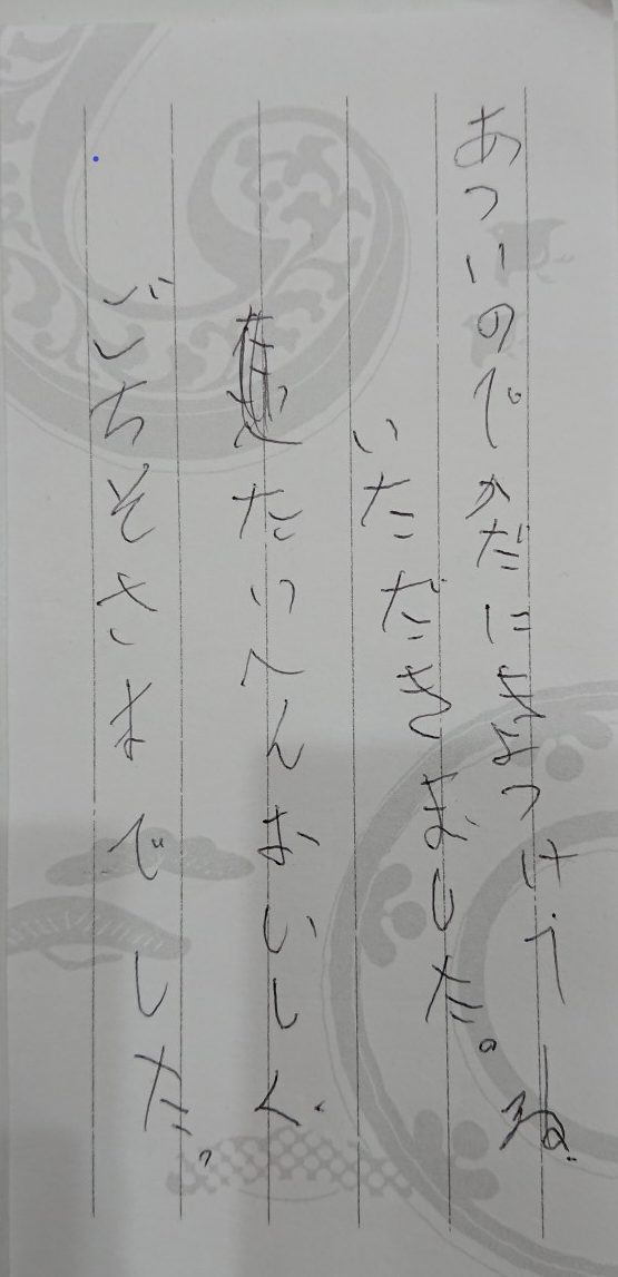 お客様の声2020.09.30 2025.11.19 DELILIFE ライフデリ渋谷店にお手紙を頂戴しました! ライフデリ渋谷店へのお手紙をご紹介します。「暑いので体に気をつけてね。 大変おいしく、ごちそうさまでした。」とのことです。ご利用半年未満のお客様。 不在の日の配達の際、返却保冷バッグの中に同封されていました。ありがとうございました。渋谷区でご高齢向けのお弁当をお探しの方、糖尿病・腎臓病の方は是非、高齢者配食サービスのライフデリ渋谷店にお任せ下さい。