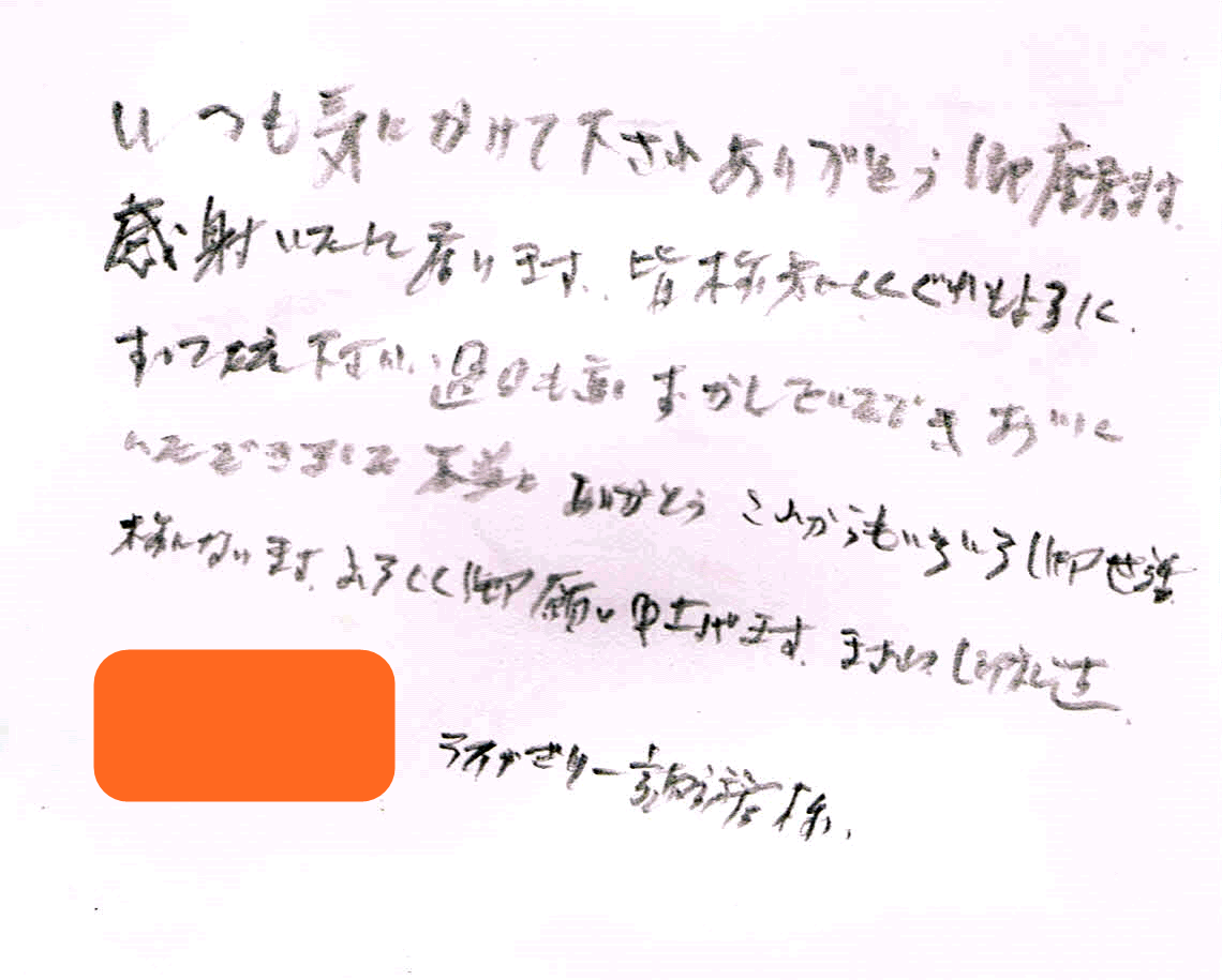 ライフデリ諏訪店へのお手紙をご紹介します。