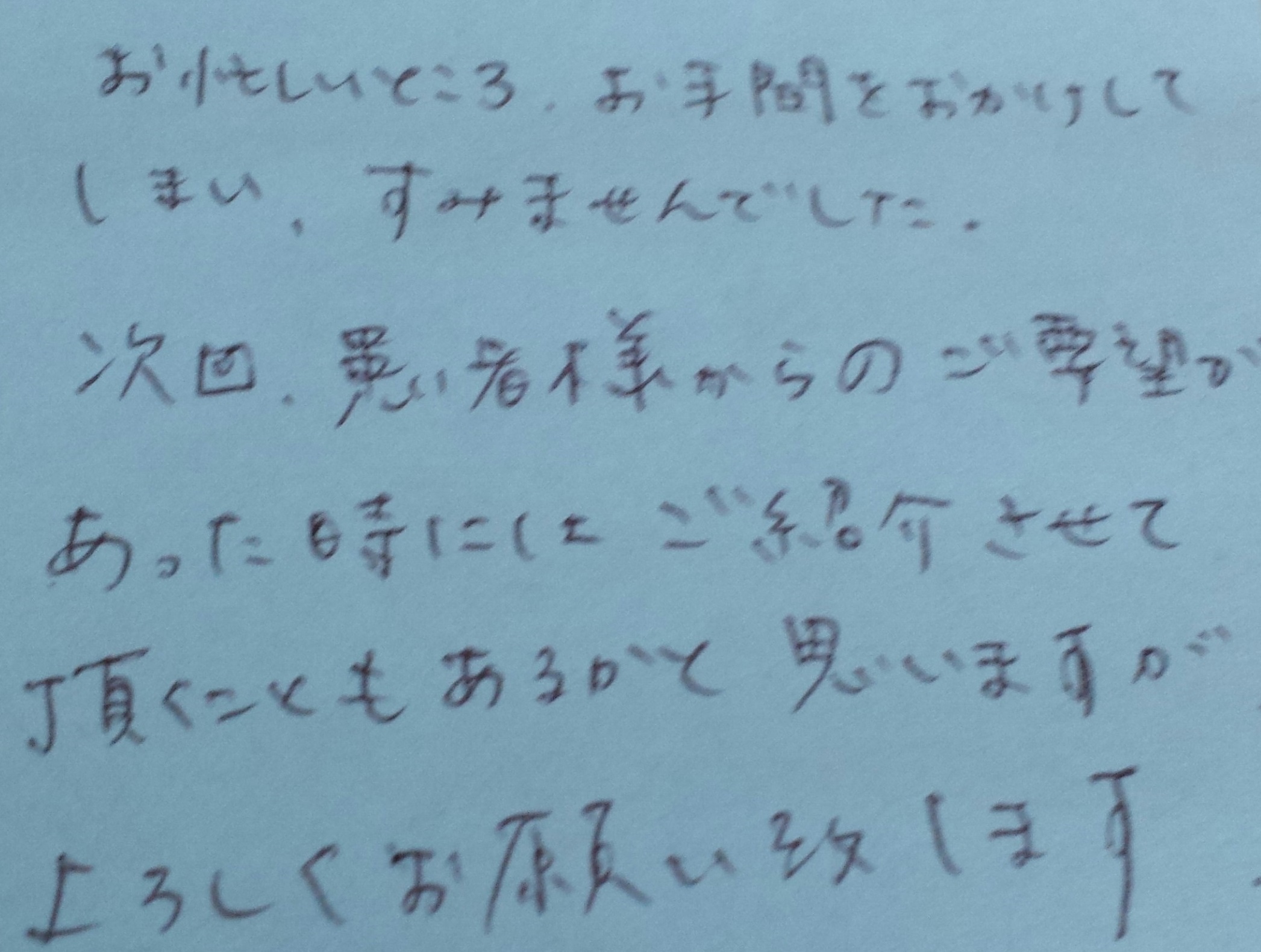 お客様から暖かいメッセージと素敵な絵を添えたお手紙を頂戴しました。