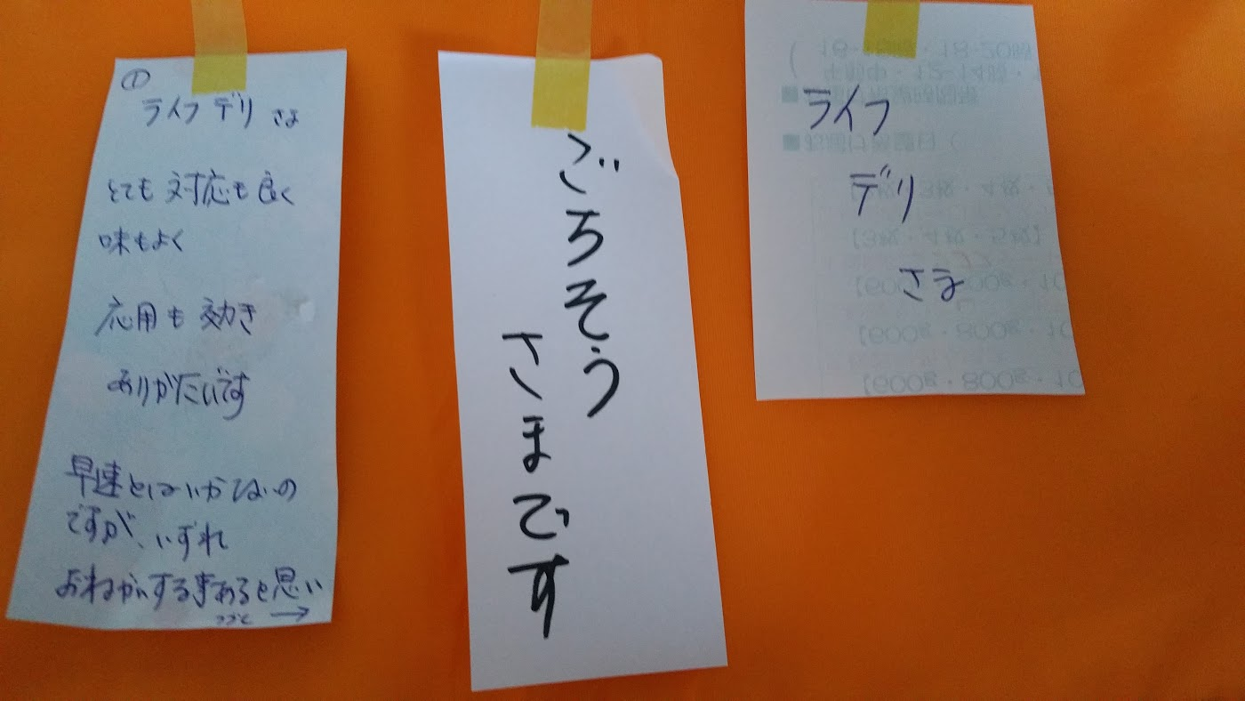 ライフデリ川崎宮前店へ有り難いお手紙を頂戴しました。