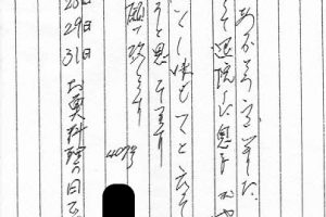 在宅で介護されるようになってから施設に入所されるまでの間、お弁当をお届けさせて頂き、そのご家族の方から感謝のお手紙を頂戴しました。